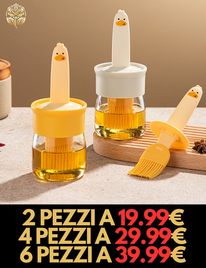 Basta versare, premere leggermente e il pennello integrato spalmerà in modo uniforme qualsiasi condimento. È ideale per arrosti, grigliate, dolci o anche una semplice bruschetta. Niente più pennelli sporchi o cucchiai appiccicosi!